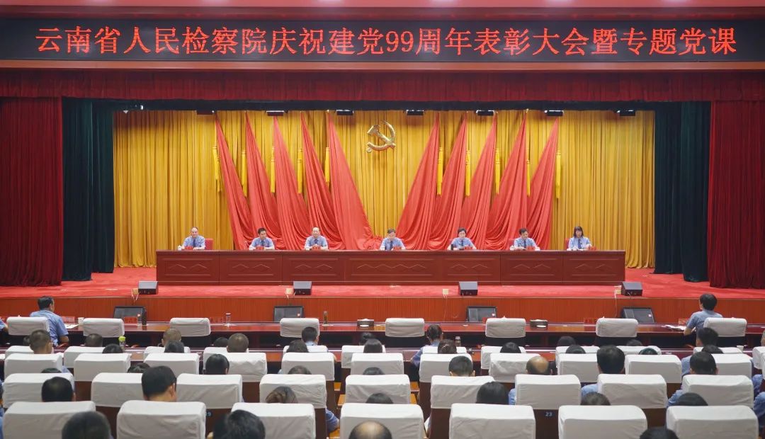 为庆祝中国共产党成立99周年,7月1日,云南省检察院举办“庆祝建党99周年表彰大会暨专题党课“,回顾党的历史,歌颂党的光辉,对免费看a片机关涌现出的先进基层党组织、优秀共产党员、优秀党务工作者、“五好文明家庭”,以及被省直机关工委表彰的先进集体和优秀个人进行表彰,并为从检满30年的检察人员颁发“荣誉章”。