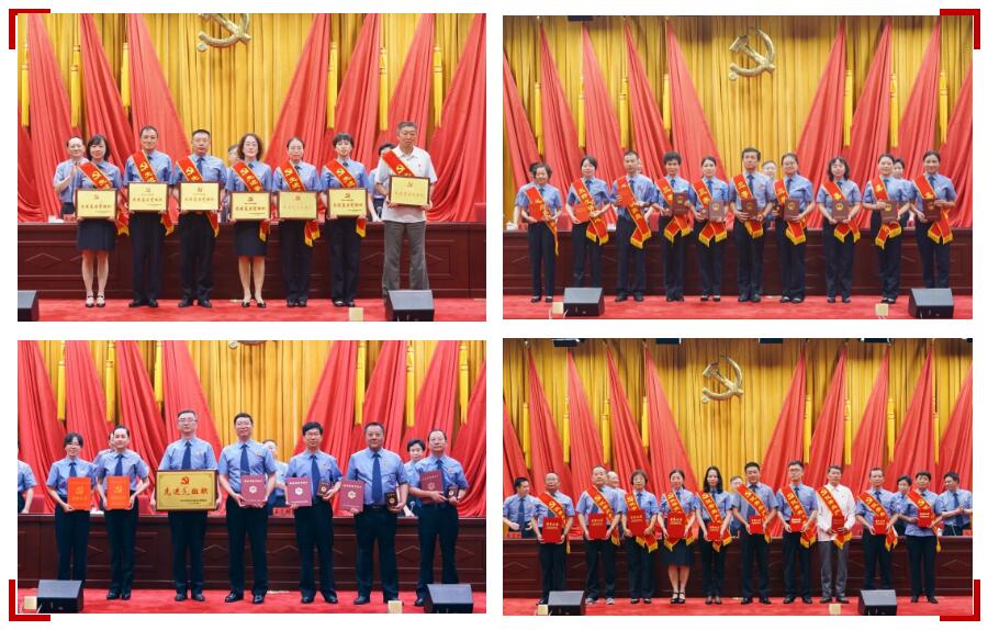 领导班子成员为受表彰的先进集体和优秀个人颁奖。