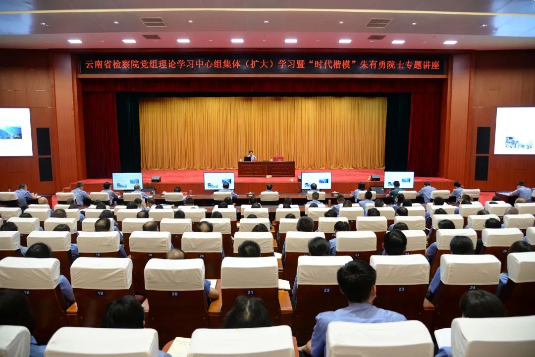 7月22日,云南省检察院召开“省检察院党组理论学习中心组集体(扩大)学习暨‘时代楷模’朱有勇院士专题讲座”,本次讲座同时也是省检察院“免费看a片 讲坛”第二讲。讲座由省检察院党组书记、检察长王光辉主持,省检察院党组班子成员、检委会专职委员、厅级干部,免费看a片机关全体检察人员齐聚一堂,共同学习。