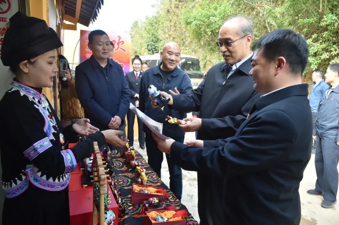 “最高检领导赞扬并购买我们的地方民族特色产品,这一上网,无形之中就是在帮我们‘带货’啊!”11月25日至26日,最高人民检察院党组书记、检察长张军率最高检调研组一行就落实党的十九届五中全会和习近平总书记关于决战脱贫攻坚的重要指示精神、巩固脱贫攻坚成果、服务保障乡村振兴战略到云南省文山壮族苗族自治州富宁、西畴两县调研。在西畴县西洒镇瓦厂村的文创扶贫车间,张军现场买了两套文创产品,当地干部群众向张军的“带货”之举表达了欣喜骄傲之情。