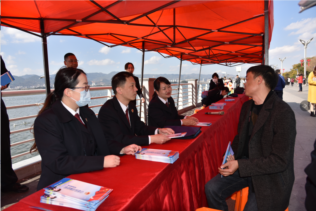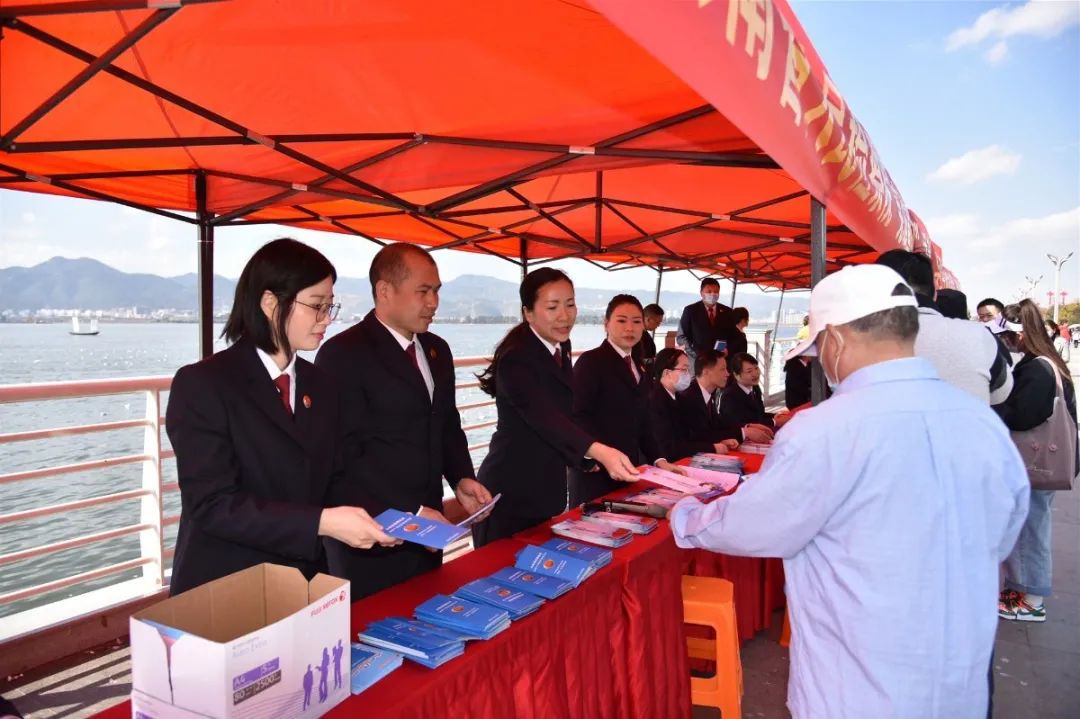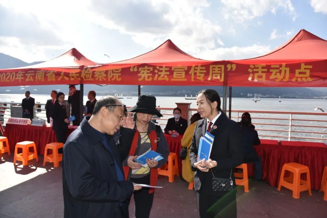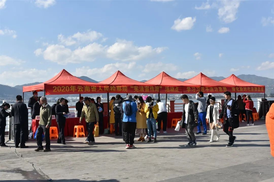 初冬时节,昆明市民相约来到滇池湖畔,共赴一年一度的“滇池之约”。12月2日,正值第七个“国家宪法日”来临之际,为做好宪法宣传,落实中宣部、全国普法办、最高人民检察院相关要求,促进各行各业群众学习习近平法治思想,了解检察工作,云南省检察院在昆明海埂大坝开展“学习习近平法治思想,强化新时代法律监督”检察开放日活动。
