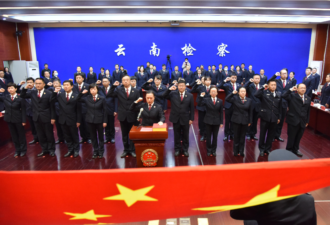 12月4日上午,云南省检察院组织开展机关新任处级领导和新进人员宪法宣誓活动,并围绕学习贯彻习近平法治思想进行座谈。省检察院党组成员、政治部主任王琼芬主持活动。