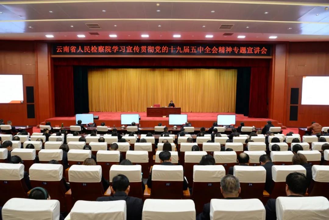 12月22日,云南省检察院机关举办学习宣传贯彻党的十九届五中全会精神专题宣讲会,邀请省委宣讲团成员、省委宣传部副部长、云南省社会科学院、中国(昆明)南亚东南亚研究院党组书记、院长杨正权进行专题辅导。省检察院党组书记、检察长王光辉主持宣讲会,省检察院机关全体检察人员参加会议,昆明铁路运输检察分院全体检察人员以视频方式参加学习。