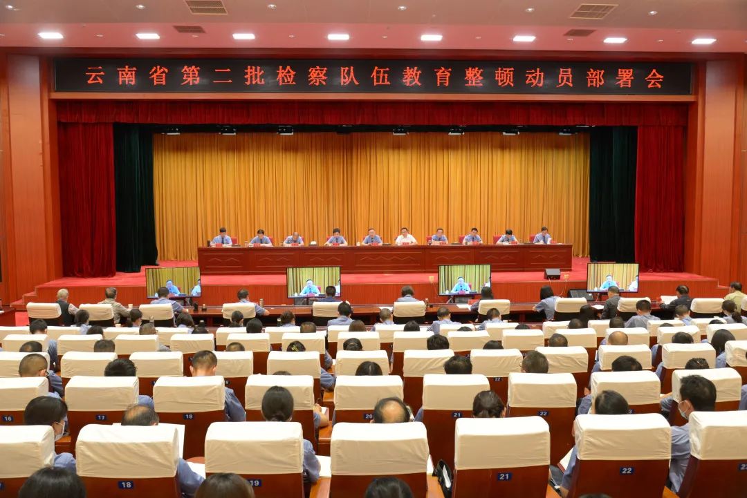 8月17日下午,全国第二批检察队伍教育整顿暨最高检党组第七轮巡视动员部署会议后,云南省检察院召开全省第二批检察队伍教育整顿动员部署会。省委政法委常务副书记、省政法队伍教育整顿领导小组成员、秘书综合组组长李若昆到会指导,省检察院党组书记、检察长王光辉就全省第二批检察队伍教育整顿工作作动员讲话。省检察院全体检察人员在主会场参会,昆明铁路运输检察两级三院以视频形式在分会场参会。