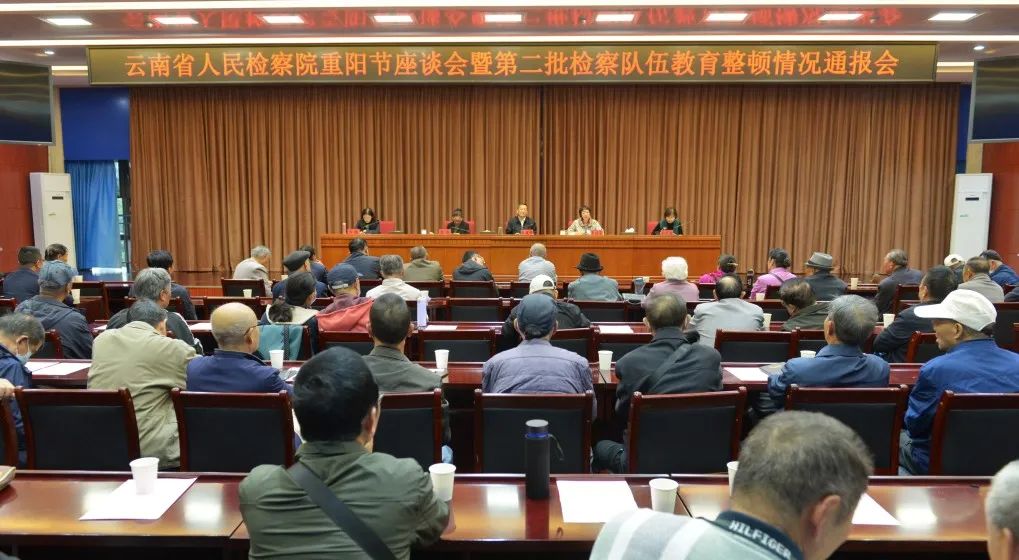 向老前辈致以节日问候、听取老同志意见建议、汇聚云南检察事业高质量发展合力……10月14日,云南省检察院召开重阳节座谈会暨第二批检察队伍教育整顿情况通报会,邀请省检察院机关离退休的老前辈、老同志100余人参加会议,共忆昔日风采,畅谈检察情谊。省检察院党组副书记、副检察长施建邦,党组成员、政治部主任王琼芬参加会议。