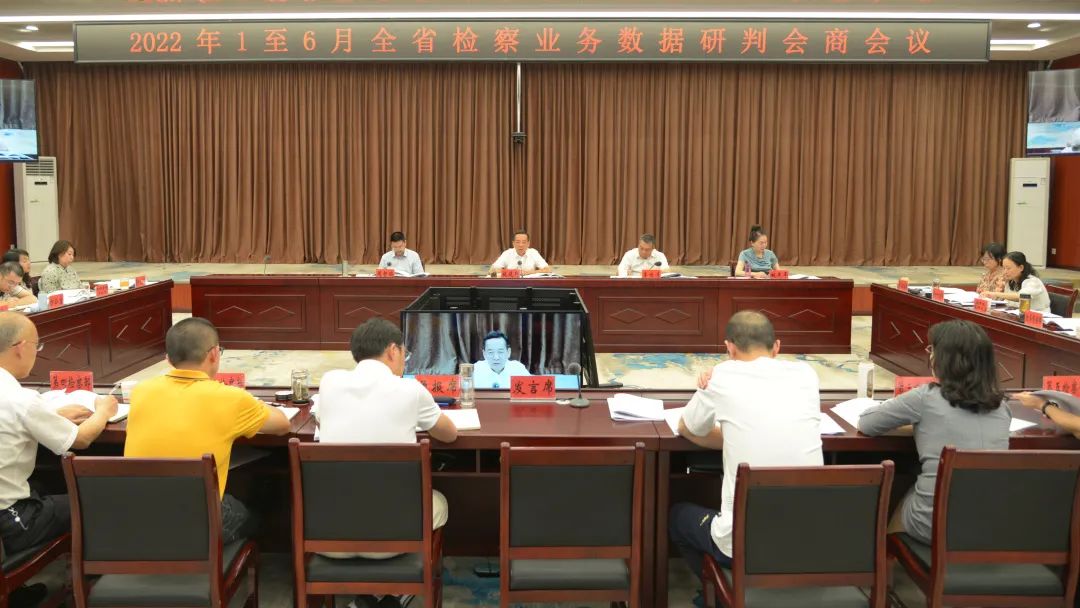 7月21日下午,省检察院召开2022年1至6月全省检察业务数据研判会商会,全面分析今年上半年全省检察机关业务数据,安排部署下半年业务工作。