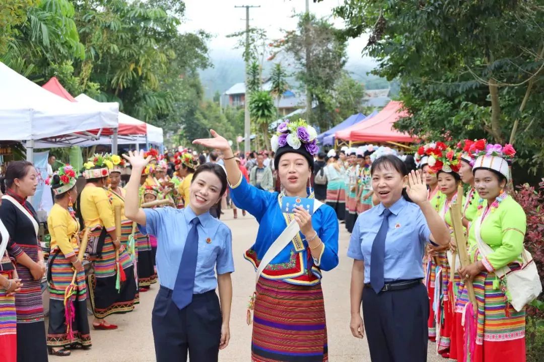 结合农村实际,抓住民族节庆有利时机,开展精准普法。11月11日“禾腊咪”节当天,来自四面八方的宾客汇聚到大渡岗乡大荒坝村委会昆罕大寨,西双版纳检察机关也借此机会与当地少数民族同胞一道载歌载舞、集会赶摆、畅聊生产生活、普及法律知识。前来参加活动的群众热情高涨,纷纷向检察官咨询相关法律问题。