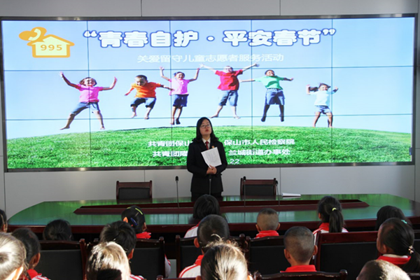 留守儿童比正常家庭的孩子面临着更大的生活、学习、安全、情感等困境,这个群体需要全社会的共同关注。今年,保山市检察院组建了保山市首支“关爱留守儿童志愿者服务队”,走进乡镇、社区、校园,为留守儿童送去温暖关怀和助力未成年人健康成长的法律知识。