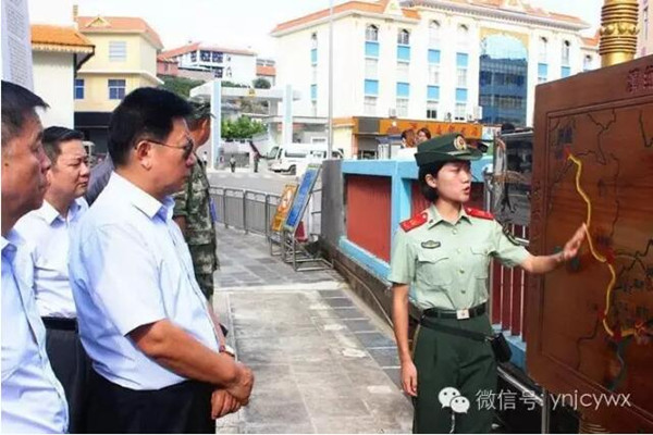上午,视察团前往中铁十七局视察大瑞铁路瑞丽段建设情况。在视察的过程中,云贵铁路云南分公司和昆明铁路检察院分院带领视察团视察了中铁十七局承建的瑞丽特大桥,并通过走现场、看展板、听解说的形式向视察团的团员们汇报了近年来检企共建的详细情况。之后,视察团参观了瑞丽姐告口岸,认真了解了德宏州少数民族风情、边民之间的往来情况及边境安全保障情况。