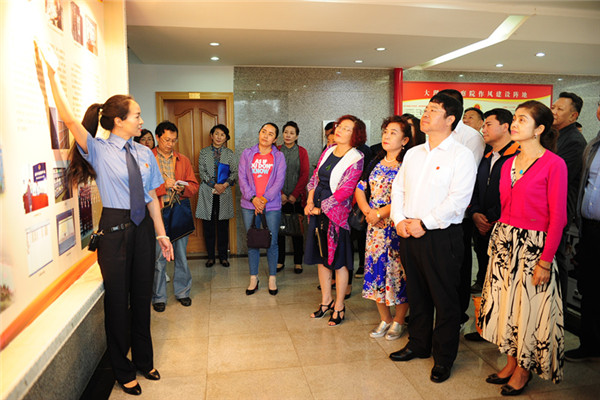 大理石砌的墙面上挂着一幅幅用木框裱着的照片、格言……走进大理市检察院检务公开大厅,浓浓的白族风韵便扑面而来。大理市检察院浓厚的融检察、廉政、民族为一体的检察文化,深深吸引了代表们。特别是二楼主题为“这是我们的家”的壁框更是吸引了众多代表驻足观看……