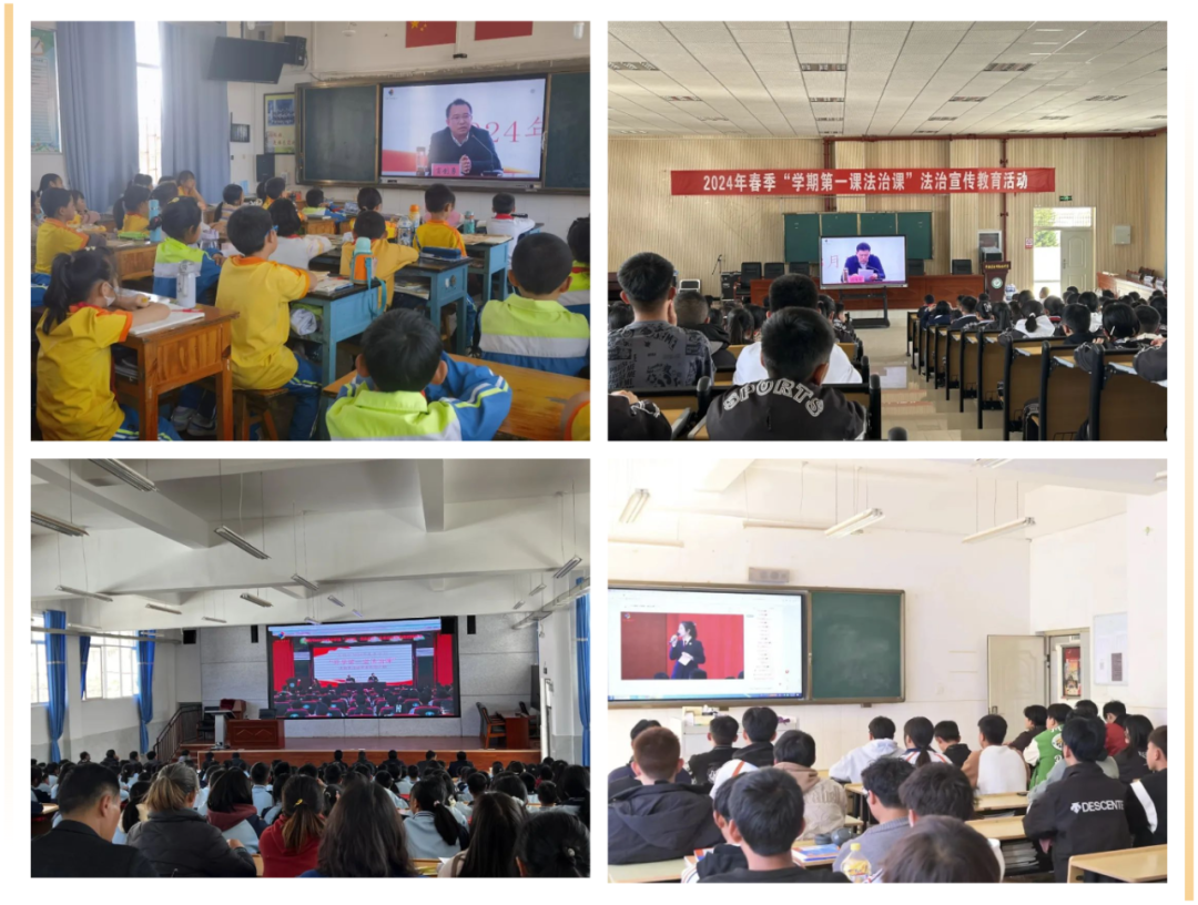 3月1日下午,大理州各中小学校同步开展2024年春季学期“开学第一堂法治课”法治宣传教育进校园活动。活动在云南建设学校设主会场,全州各中小学校以网络直播的形式进行,共有1105所中小学校、45万余教职工及四年级以上学生参加。