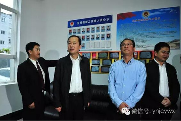 在凤庆县院,李宁检察长看望慰问了基层干警,与干警亲切交谈,了解工作、生活情况。实地查看了凤庆县院办案工作区、反腐倡廉警示教育基地、劳模创新工作室,对检察文化建设提出了建设性意见。