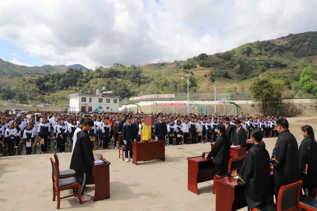 近日,凤庆县检察院联合雪山镇司法所、派出所、综治办在凤庆县雪山中学以“情景剧+模拟法庭+现场普法问答”的方式开展一次“沉浸式”普法。11名学生穿上制式服装,完成了审判人员、公诉人、书记员、法警、辩护人、被告人的角色扮演,并按照法庭调查、举证质证、法庭辩论、法庭教育、最后陈述、当庭宣判完成了刑事审判的整个流程。