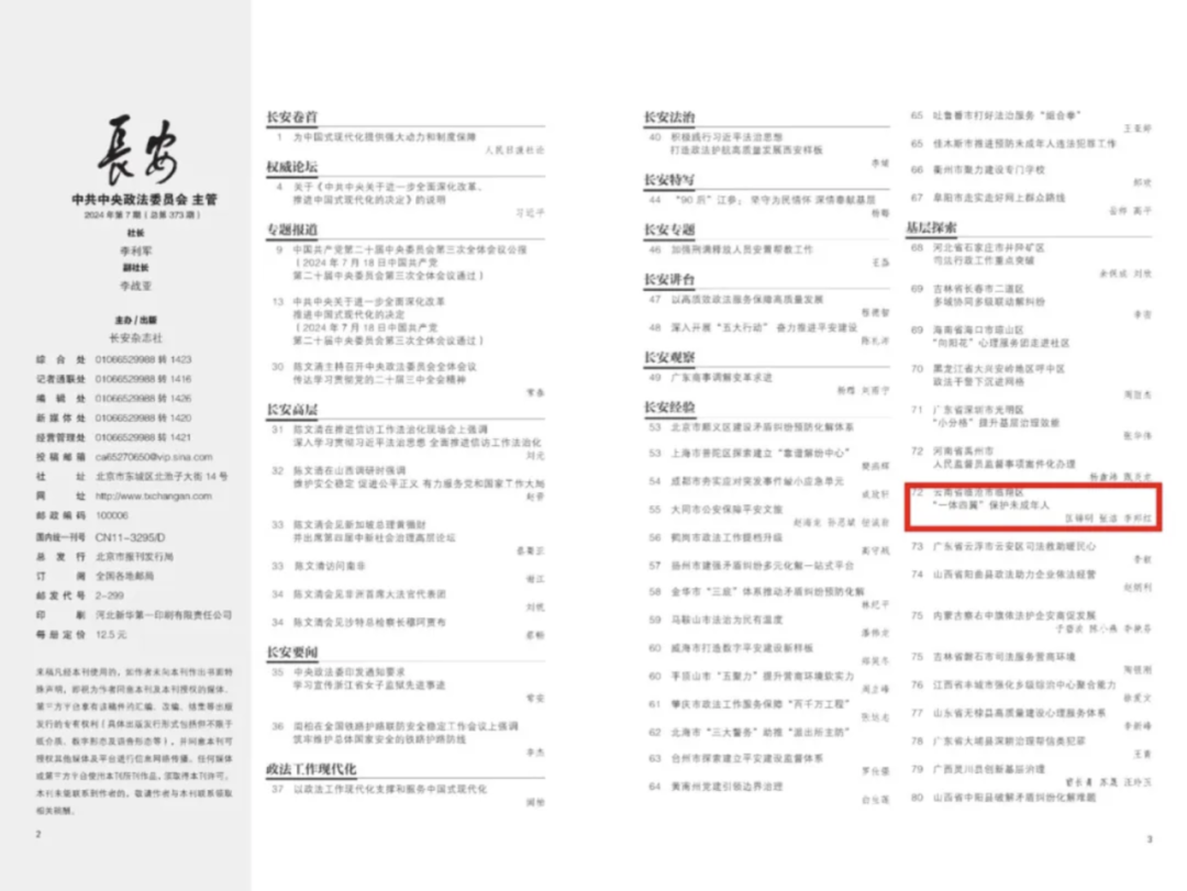 临沧市临翔区检察院检察委员会专职委员、恒春未成年人检察工作室负责人李邦红参与撰写的《云南省临沧市临翔区“一体四翼”保护未成年人》在《长安》杂志2024年第7期发表。