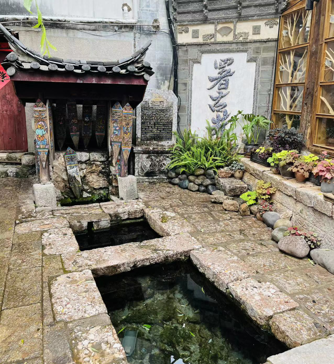 丽江古城被誉为中国的威尼斯,得益于一条条河流、水系如缎带般纵横穿行于丽江古城的街头巷尾。水是古城的灵魂,纳西族先民一直有用水、护水的民风民俗。古城内的三眼井更是合理、科学、卫生利用水资源的典范,三眼井依水势流向从高向低串联为三潭水,第一潭为泉水源头,为饮水专用;第二潭水紧接水源,水质干净,为洗菜专用;第三潭水则用于清洗衣物。