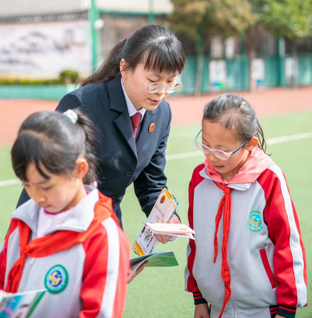 检察人员还向师生发放《中华人民共和国未成年人保护法》《中华人民共和国预防未成年人犯罪法》宣传手册,倡导同学们向家长积极宣传“两法”知识,踊跃充当“两法”知识的“小小宣传员”。