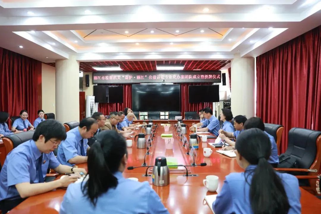 授牌仪式上,宣读了《关于组建丽江市检察机关“益护·丽江”公益诉讼专业化办案团队的通知》。团队由总负责人、召集人以及团队核心成员组成,核心成员以全市检察机关公益诉讼专业领域办案人员为主,并邀请市文化和旅游局、市生态环境局和丽江师范高等专科学校特邀检察官助理加入办案团队,共同推动丽江市检察机关高效发挥公益诉讼检察职能。