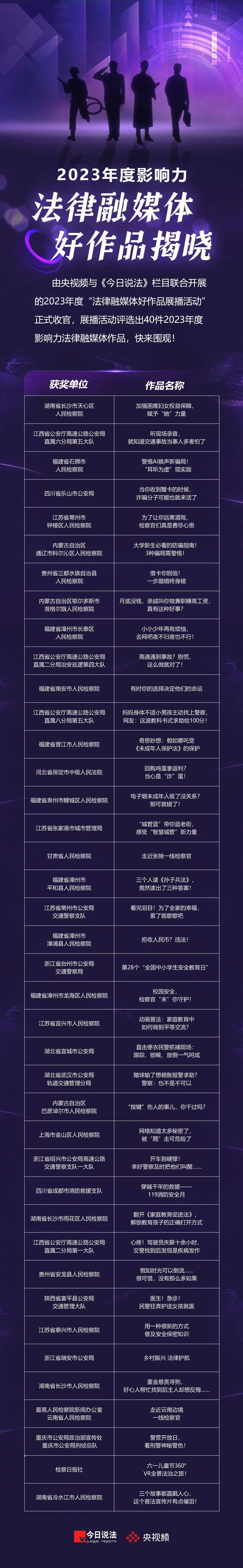 近日,央视频联合《今日说法》栏目发起的2023年度“法律融媒体好作品展播活动”获奖名单揭晓。