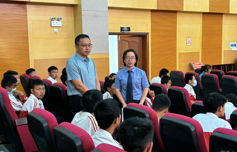 近日,芒市检察院邀请芒市江东中学的100余名学生到芒市法院旁听濮某甲盗窃、濮某乙掩饰、隐瞒犯罪所得案,一场“零距离”“沉浸式”法治课堂呈现在同学们面前。